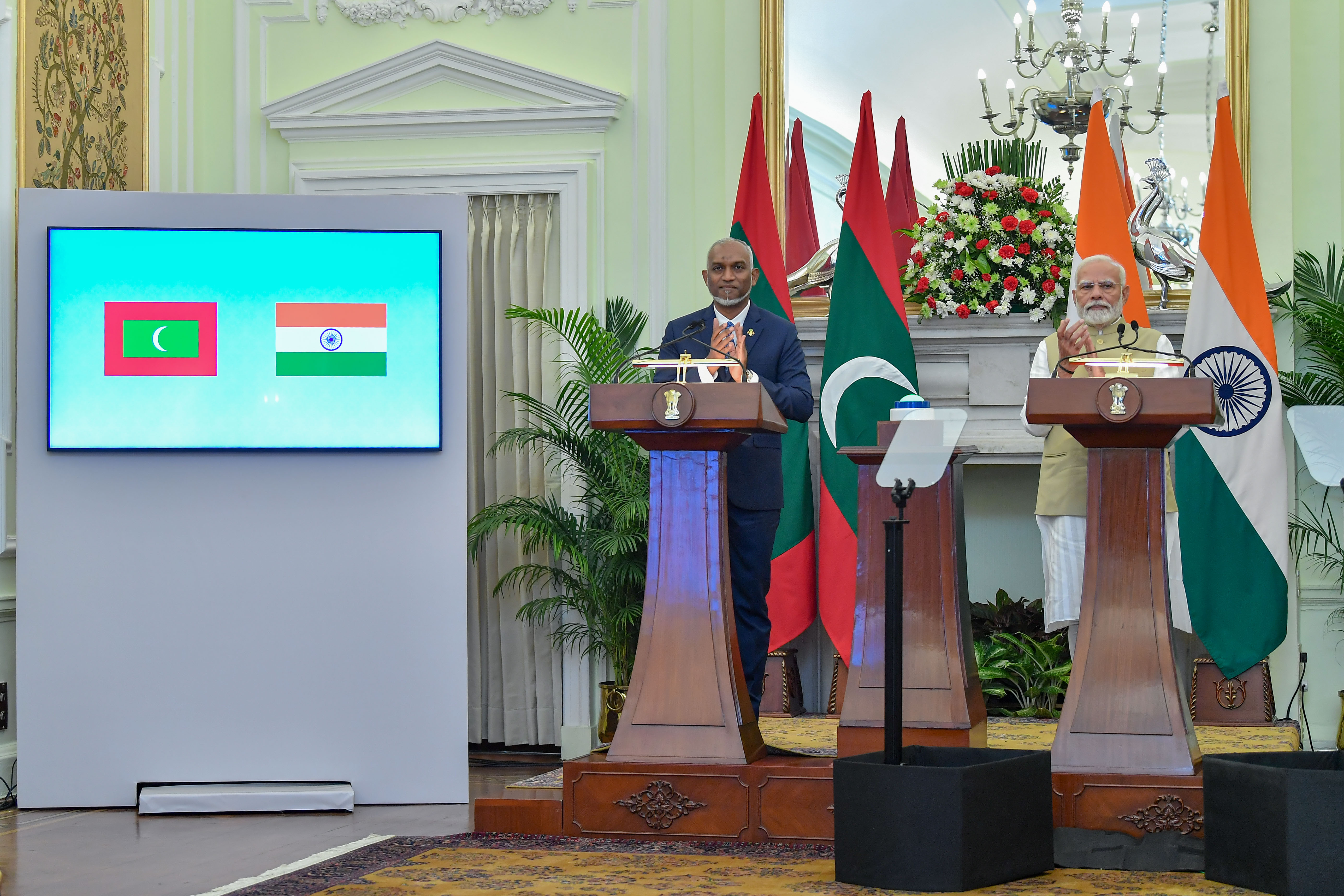 President His Excellency Dr Mohamed Muizzu has delivered a press statement at the Hyderabad House, New Delhi, as part of his ongoing state visit to India.