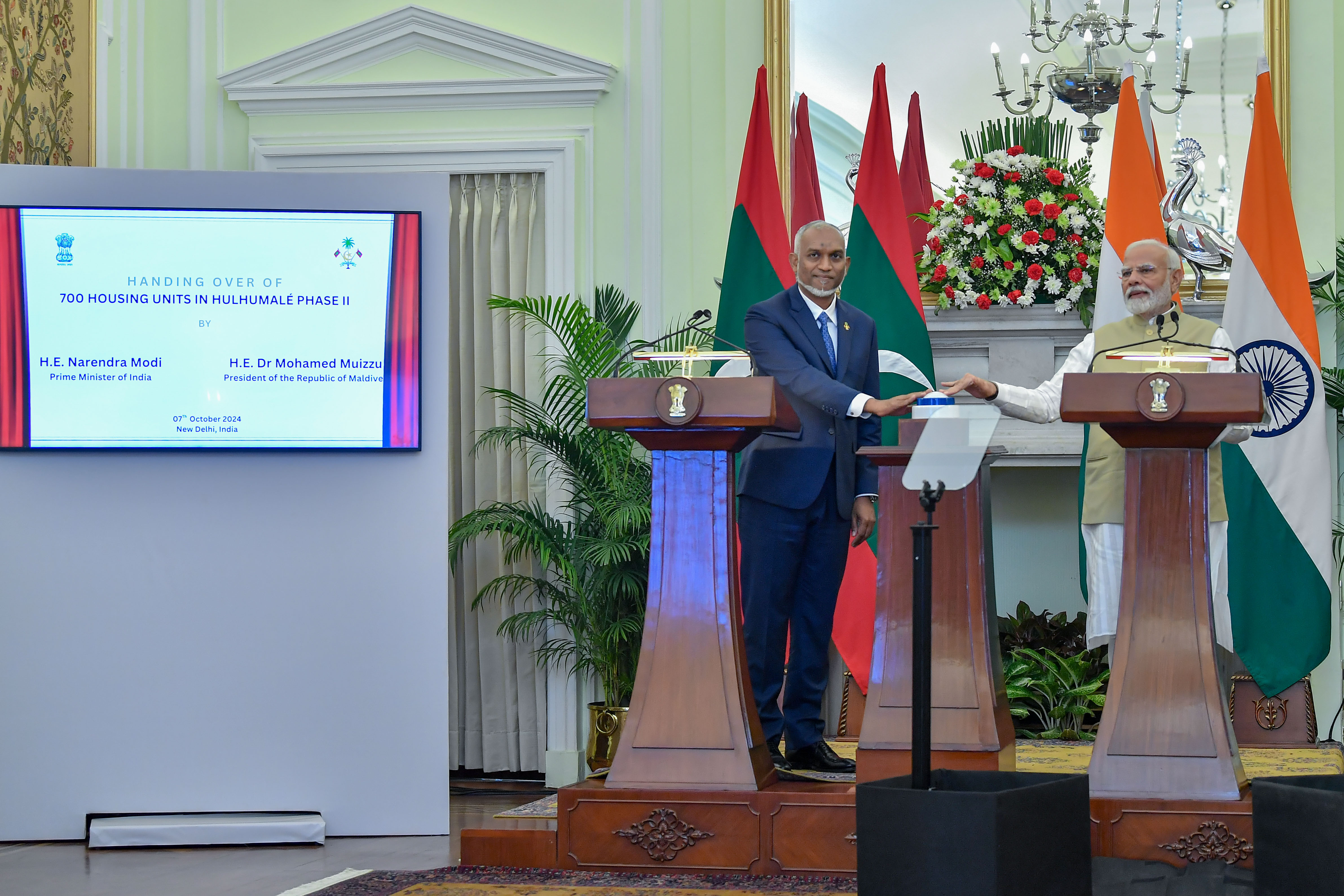 President His Excellency Dr Mohamed Muizzu and Indian Prime Minister His Excellency Narendra Modi jointly oversaw the document exchange between officials from both nations.