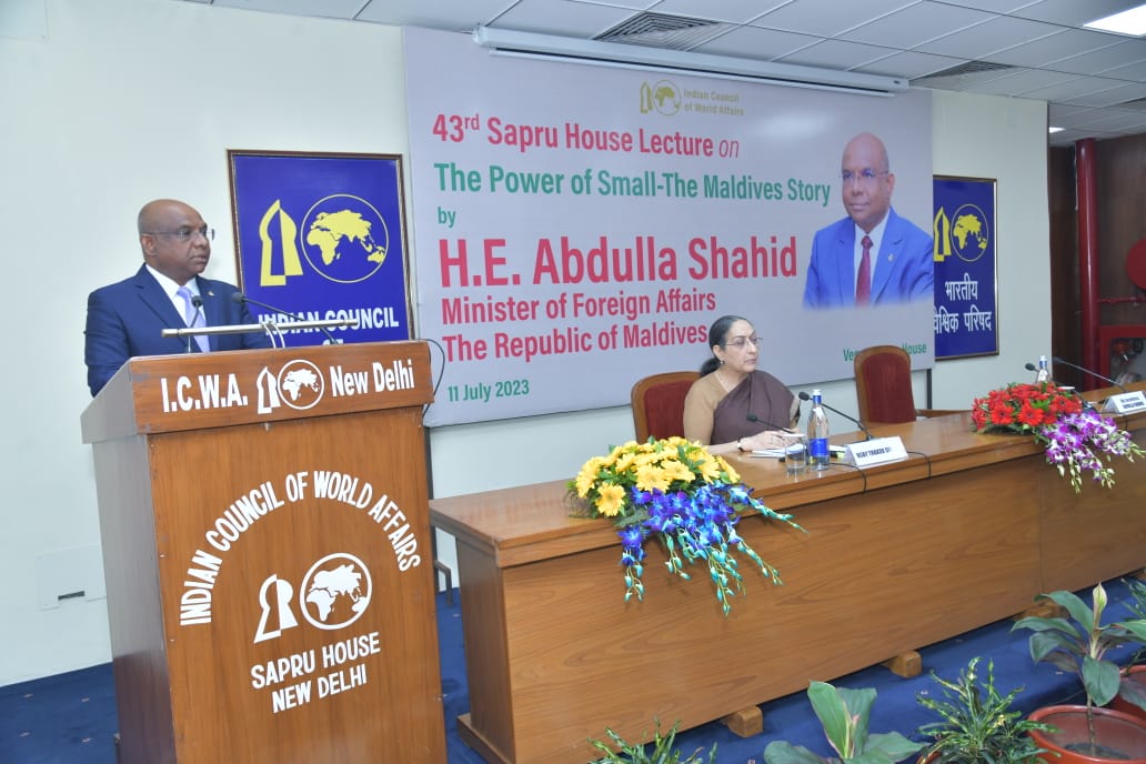 Minister Shahid speaks at the Indian Council of World Affairs